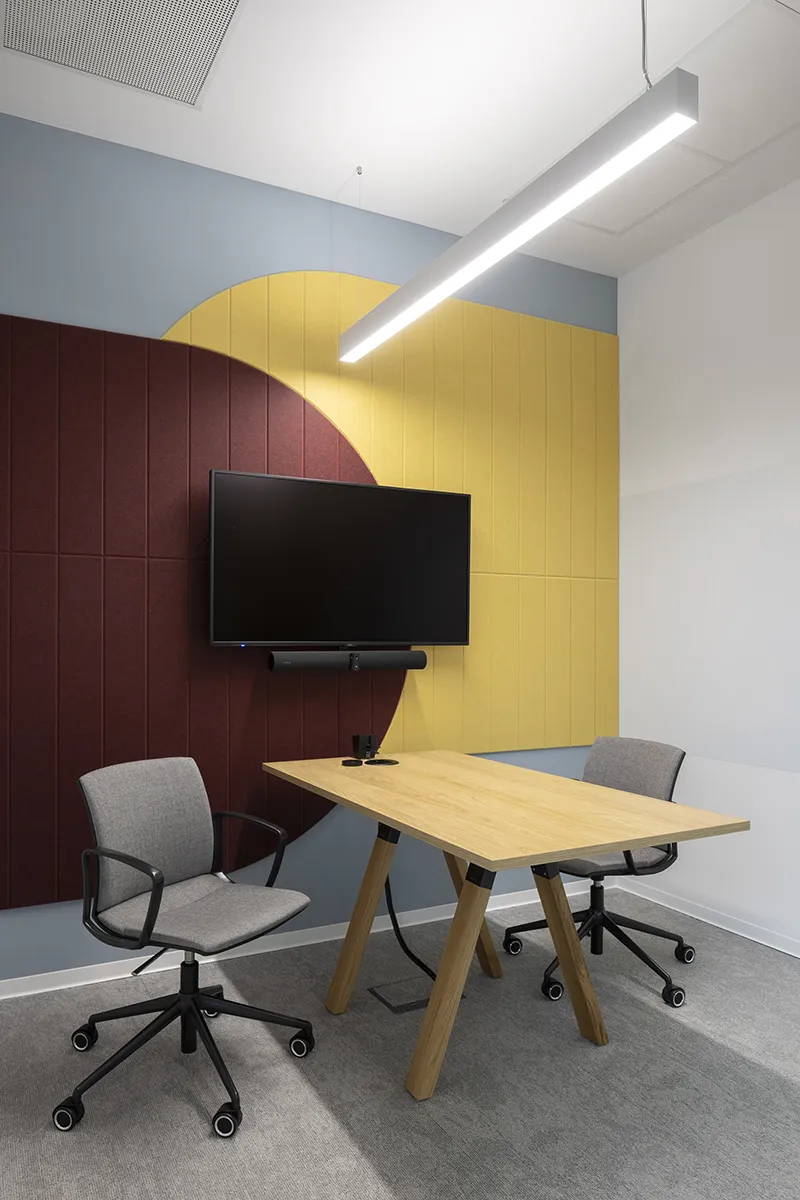 Zamestnanci majú k dispozícii lockre na osobné veci s poštovou priehradkou, čo je ideálne riešenie pre zdieľané pracovné miesta, ktoré spravujú pomocou aplikácie. Priestor je útulný a akusticky vyladený, aby poskytoval komfortné pracovné prostredie.
