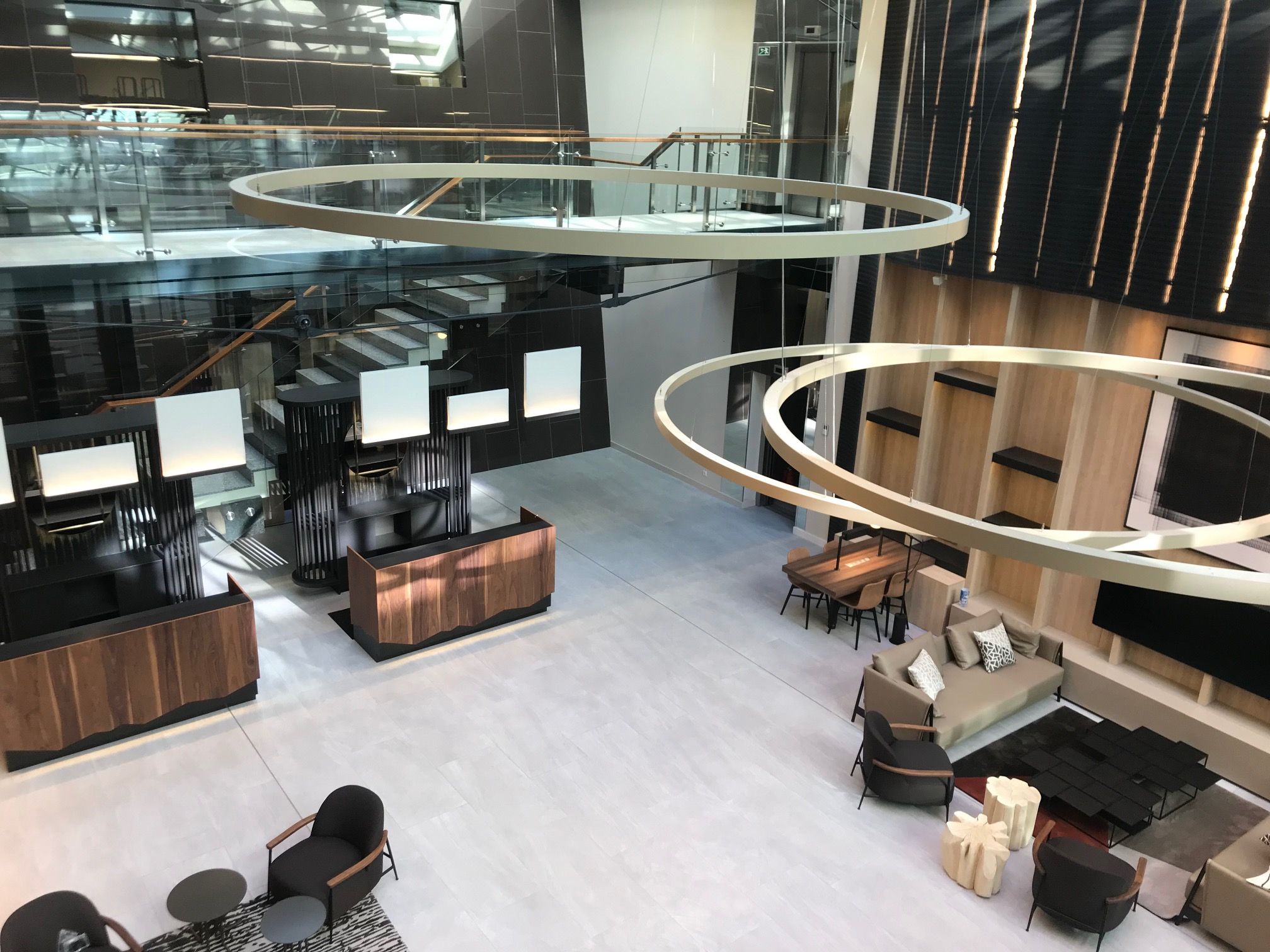 Dizajnový interiér hotela v historickom centre Bratislavy je doplnený o rôzne typy svietidiel, od praktických vsadených bodoviek až po exkluzívne stojace či stropné kúsky.