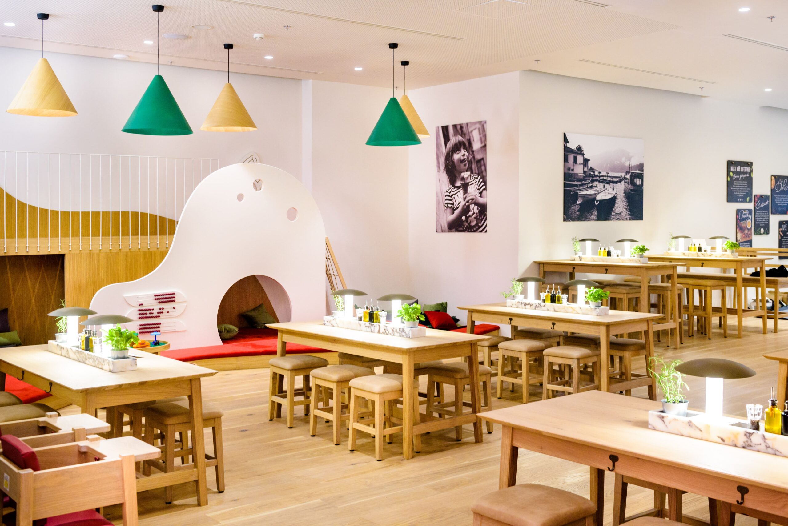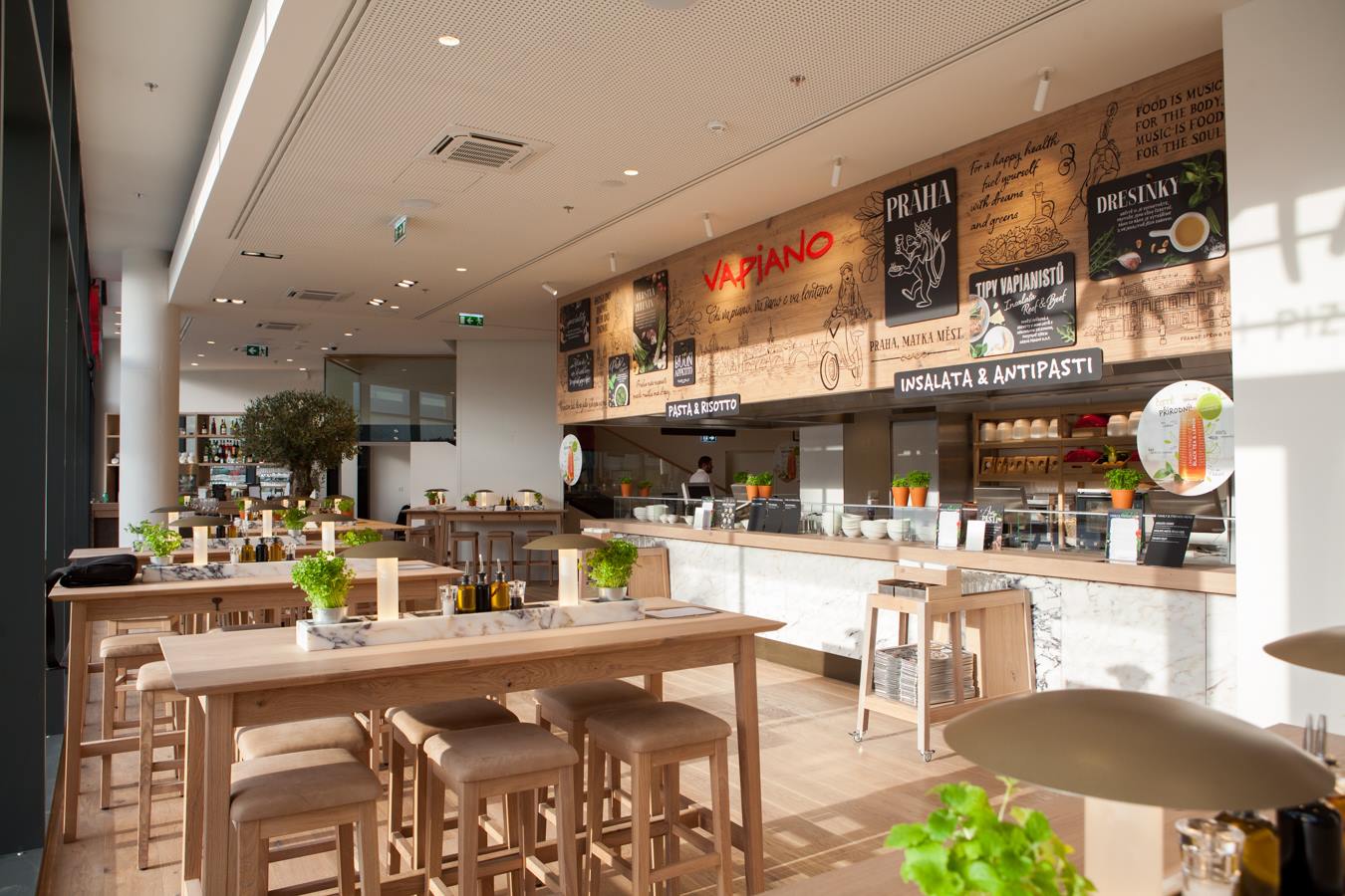 Vapiano je sieť talianskych reštaurácií, ktoré nájdeme po celom svete. Architektky z win win navhrli osvetlenie pre ich priestory v Prahe. Podarilo sa im vytvoriť príjemnú a pohodovú atmosféru.