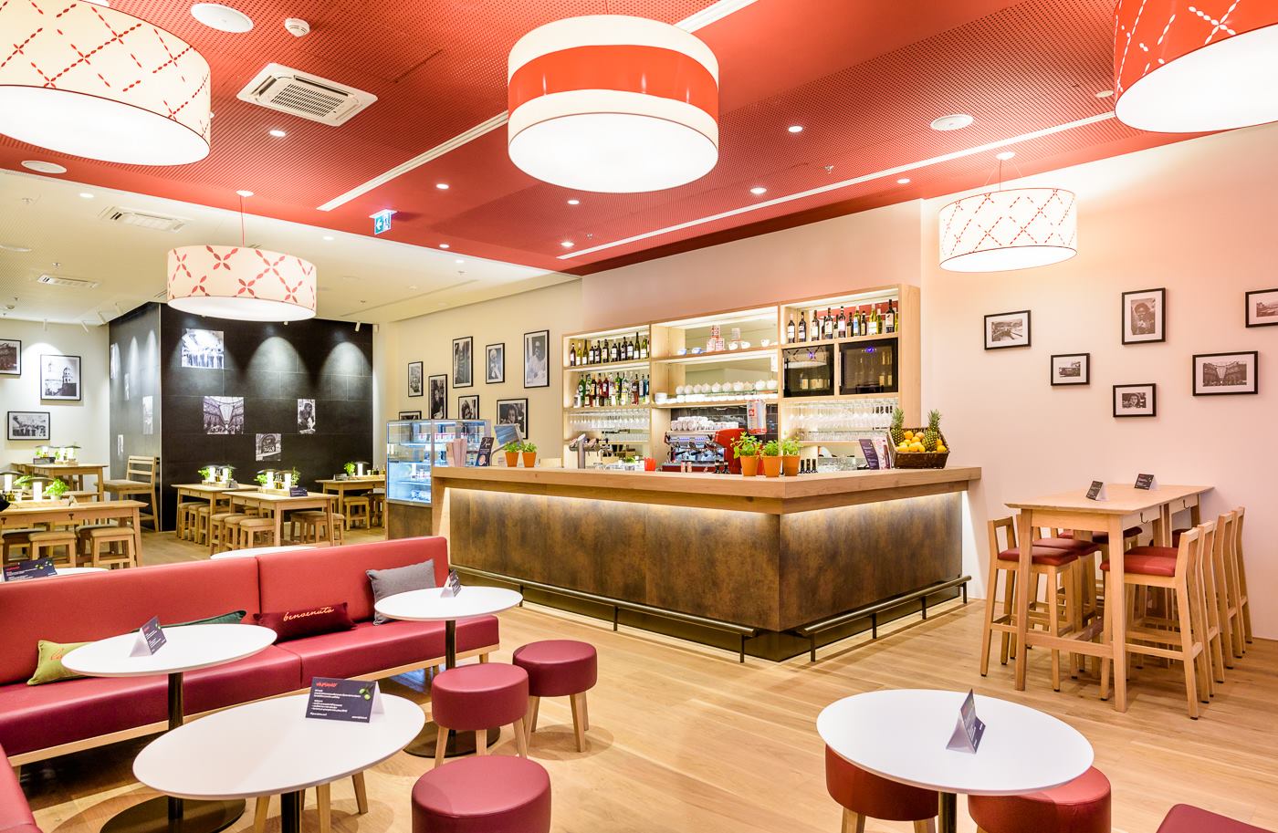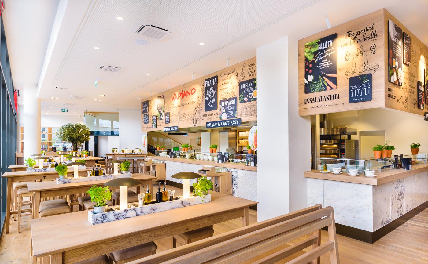 Osvetlenie reštaurácie Vapiano v OC Quadrio v Prahe