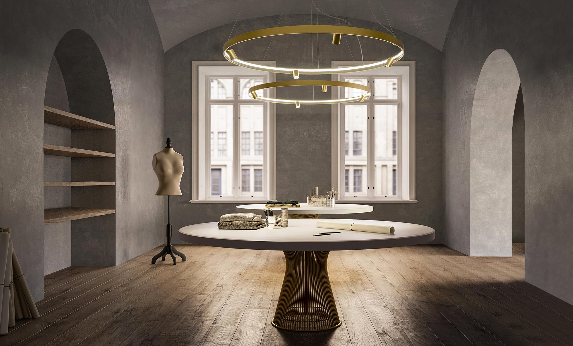 Aréna ako priestor, kde sa konajú predstavenia. Pohodlne sa usaďte a vychutnajte si unikátnu svetelnú symfóniu kolekcie Arena. Vtiahne vás do živého obrazu, v ktorom lúče tancujú s nevídanou gráciou. Dizajn: Panzeri
