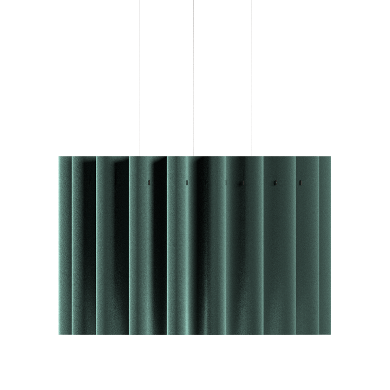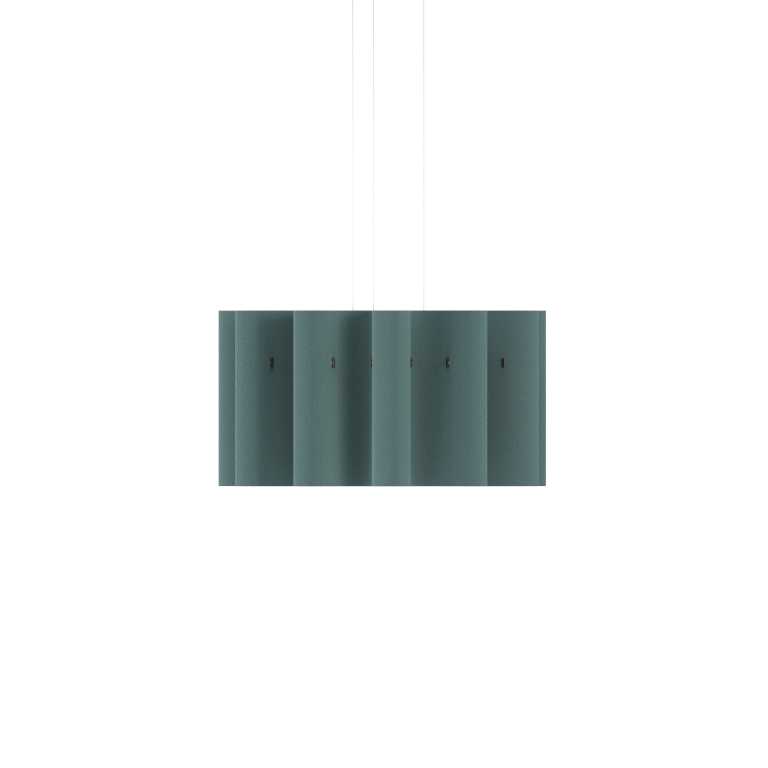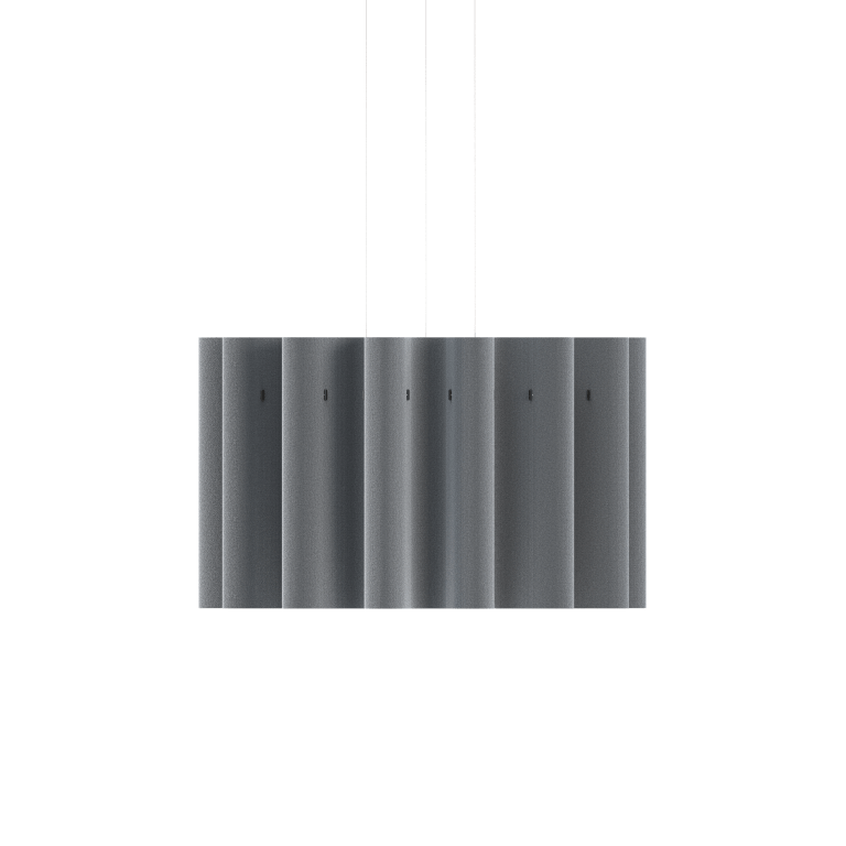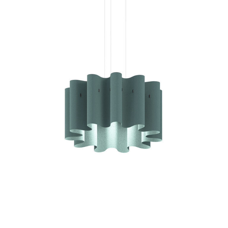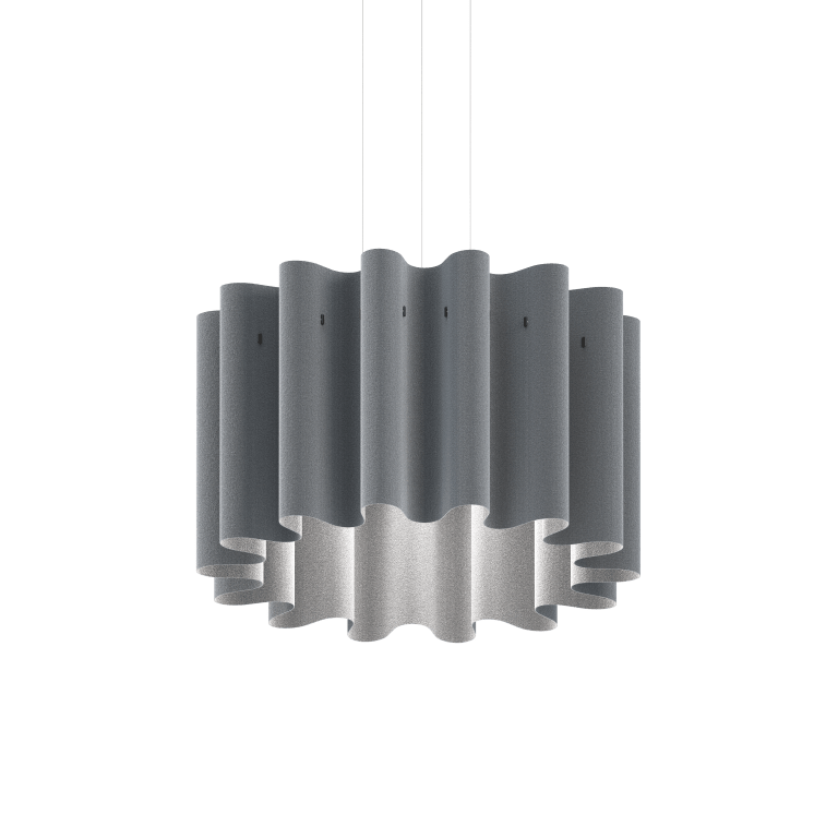 Pokojný a vlnitý dizajn závesného svietidla Kurtain Acoustic Pendant predstavuje harmonické spojenie ticha a štýlu pre otvorené priestory. Inšpirované splývavými závesmi, toto ekologické svietidlo z biologicky rozložiteľnej vlny absorbuje zvuk a premieňa hlučné prostredie na pokojné útočiská.