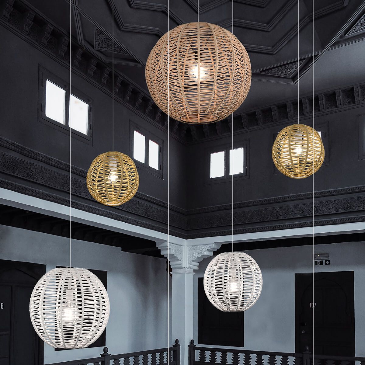 Lluna bola inšpirovaná slnkom a mesiacom. Ručne vypletané lanká sú vyrobené z recyklovaných plastových fliaš, častokrát nájdených v moriach. Kolekcia je tak hrdou súčasťou iniciatívy Oceány bez plastov. Dizajn: Fernando Martínez