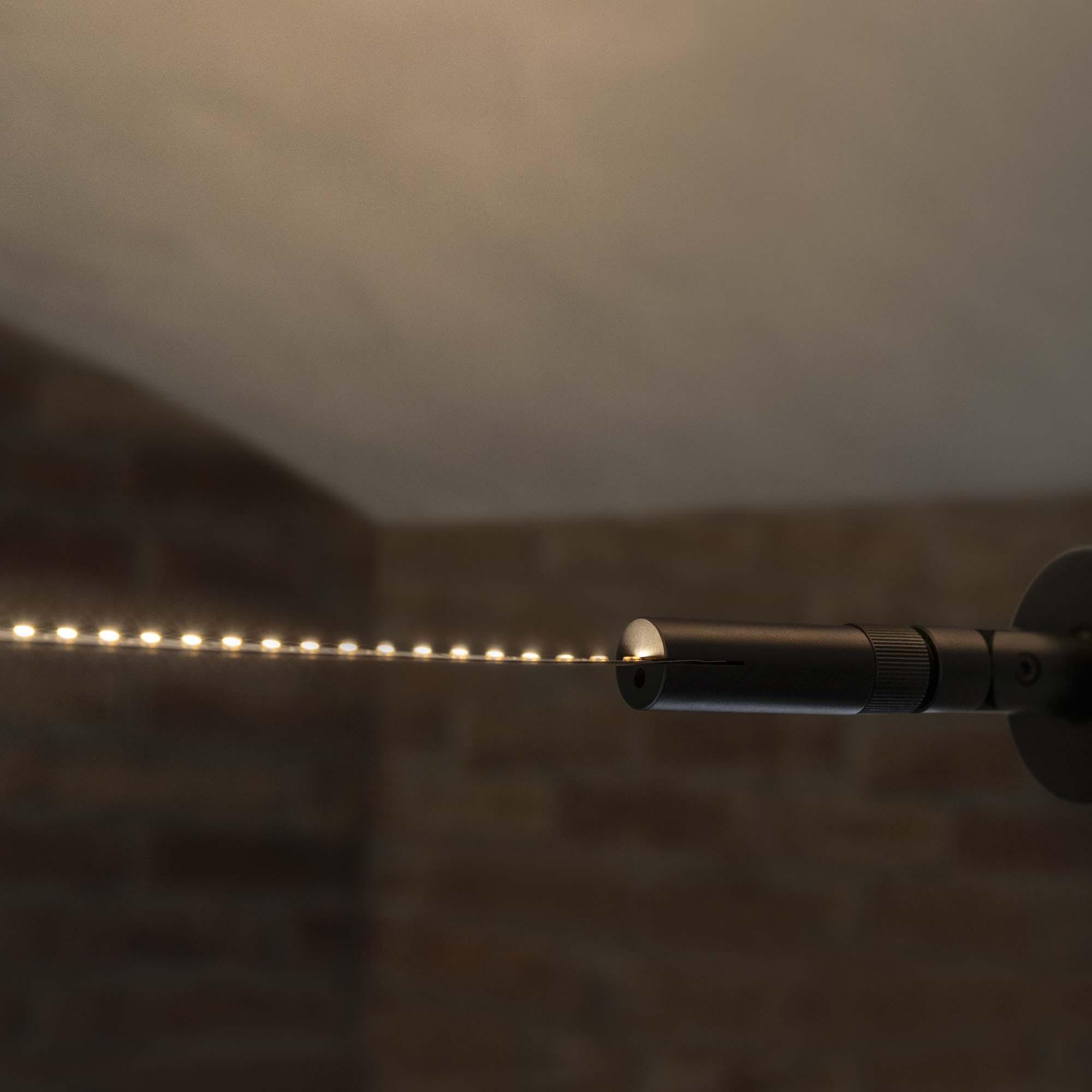 Svietidlá Tesi pôsobia mimoriadne moderne a nerušivo. Svetelný pás je napnutý medzi dvoma bodmi a vytvára elegantnú, takmer neviditeľnú líniu svetla v priestore.